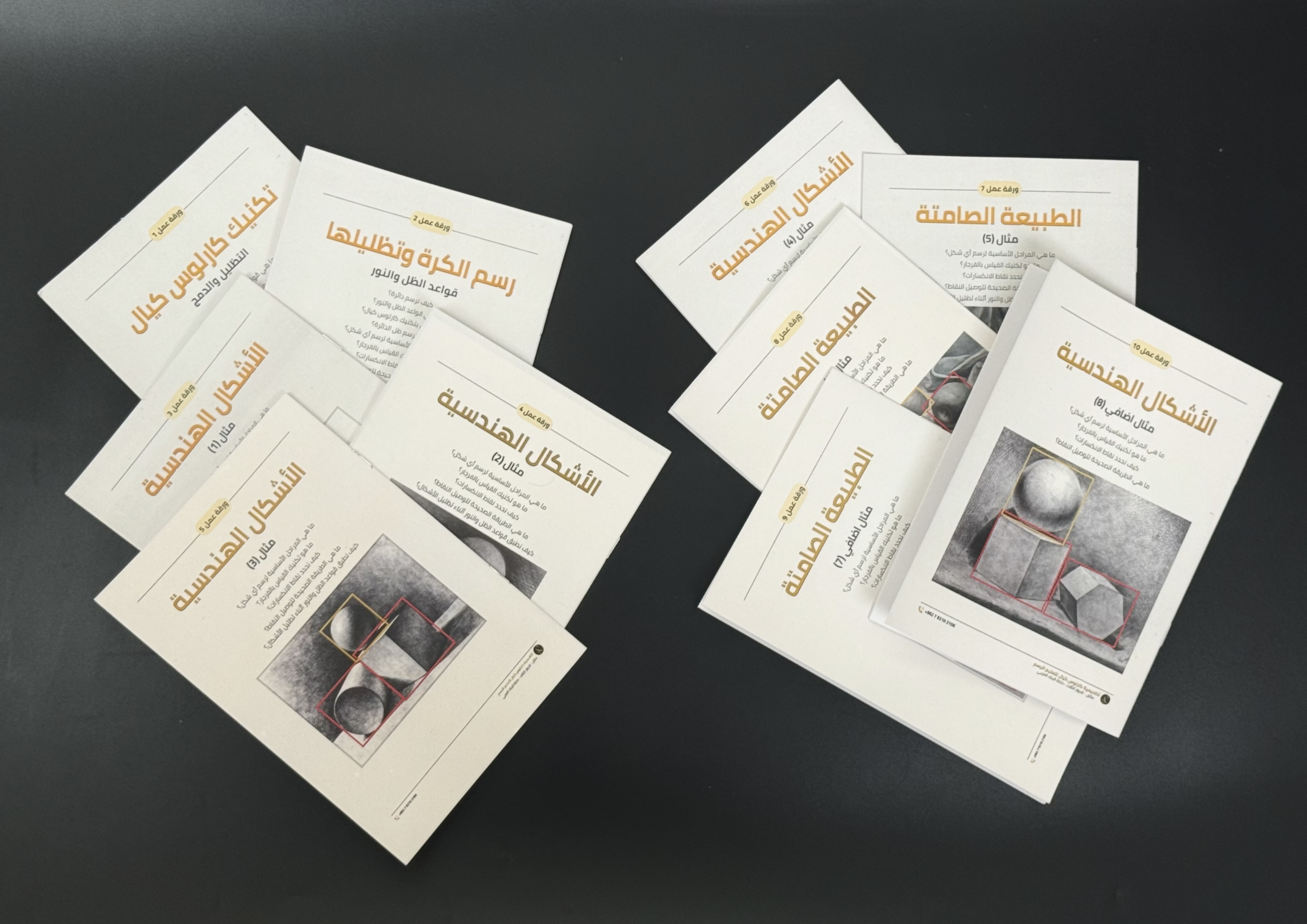 مجموعة متكاملة من 10 أوراق عمل تعليمية بإشراف المدرب كارلوس كيّال، مصمّمة لتدريب الفنان على مهارات أساسية ومتقدمة في الرسم الأكاديمي. تتناول هذه الأوراق أهم محاور الرسم مثل: