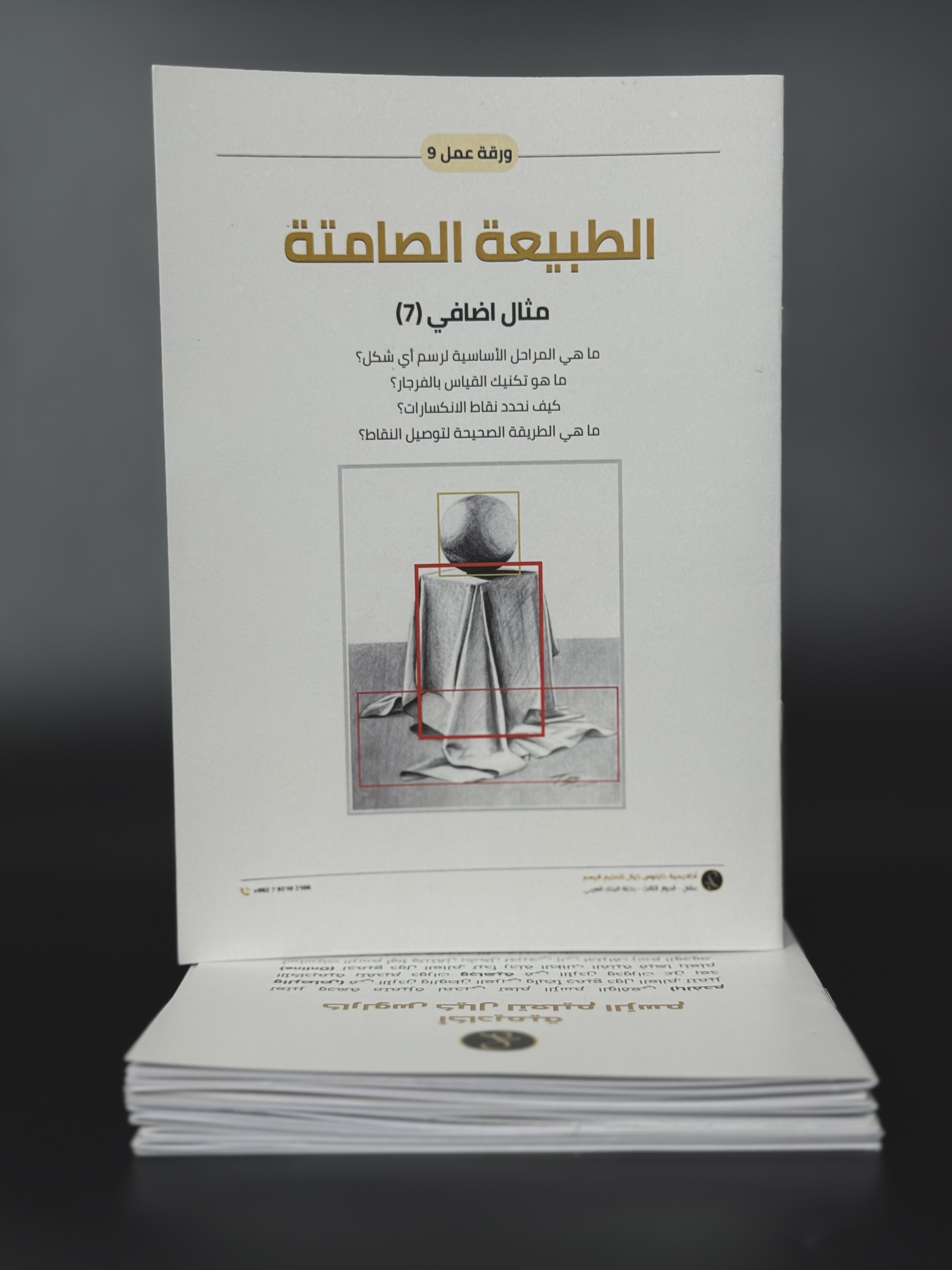 في هذه الورقة سيواجه الطالب تحديا متقدما من خلال رسم الطبيعة الصامتة اكثر تعقيدا في الشكل والتفاصيل مثل الاقمشة متعددة الطيات